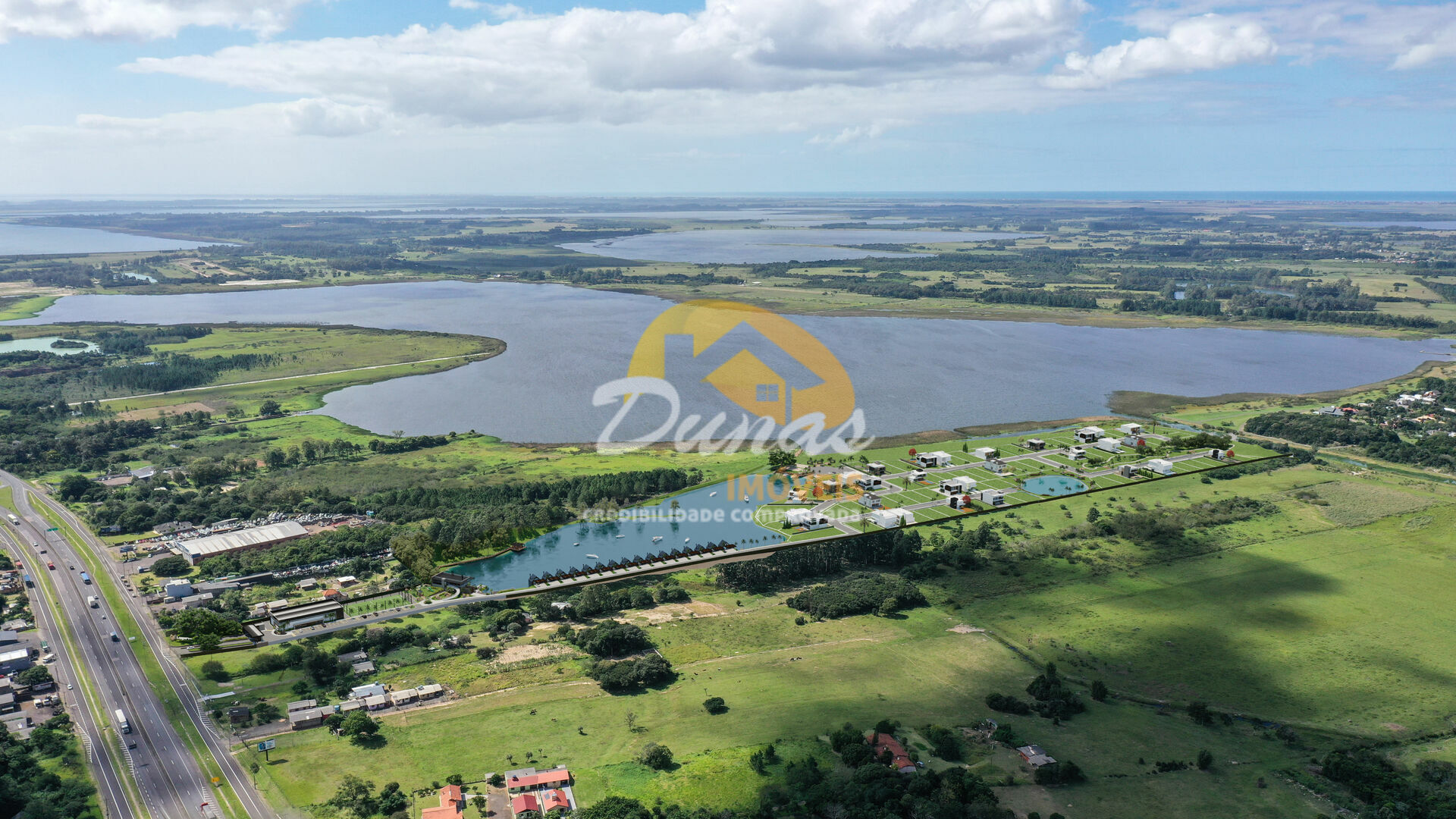 Condomínio a beira da Lagoa do Peixoto, que faz parte de uma rede hídrica composta por 23 lagoas, interligadas por canais e rios navegáveis até Torres-RS.